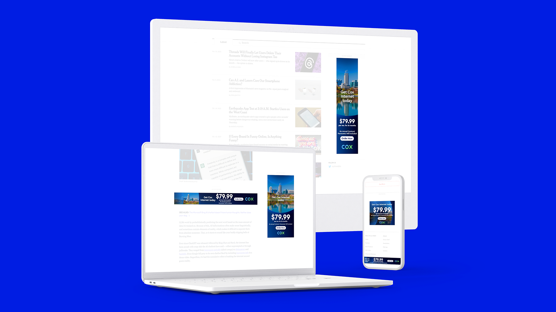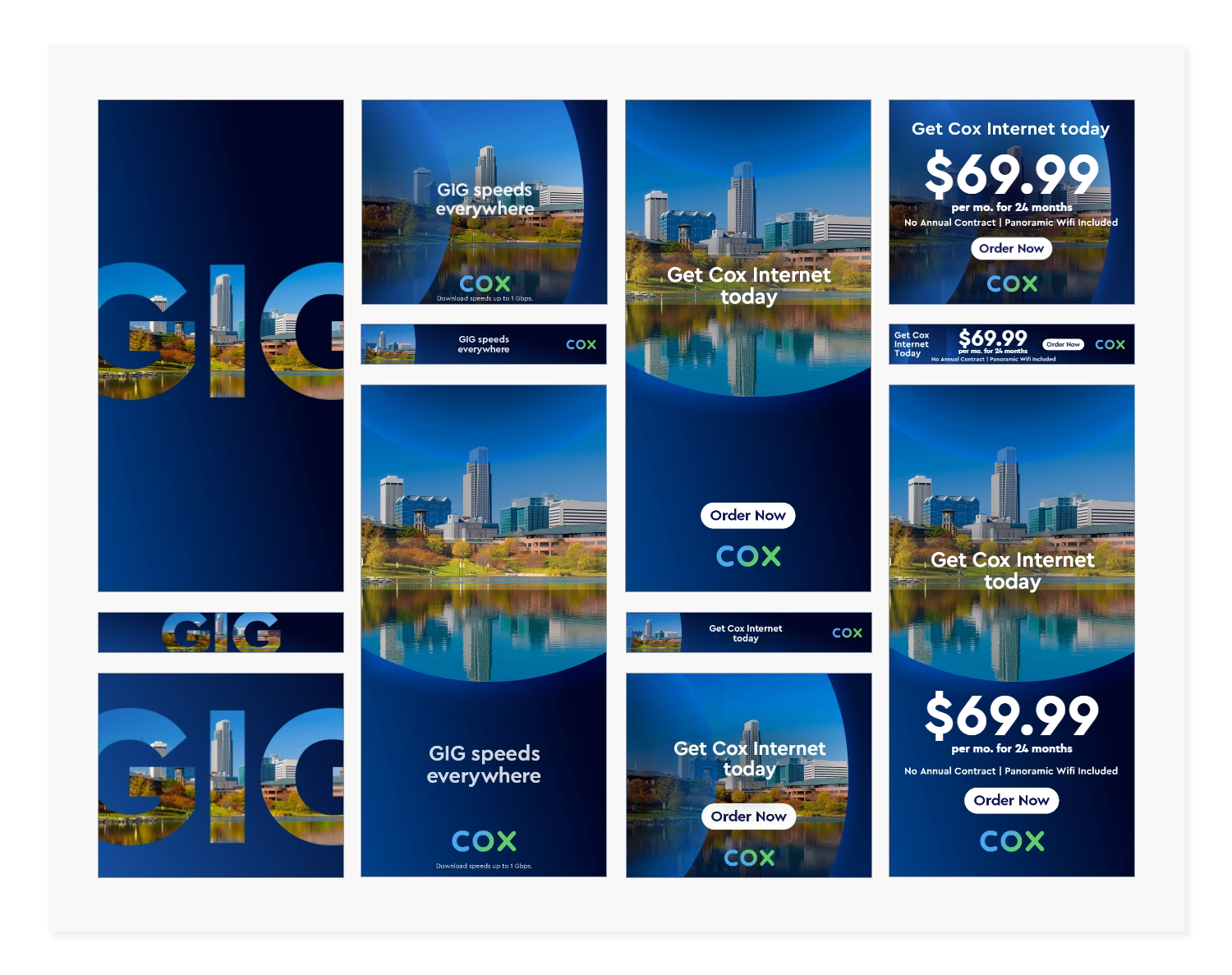 The problem is that their creative were static standard display and messages were not tailored to customers. Working directly with the in-house creative team at Cox Communications, I created media advertisements that leverages data to populate dynamic pricing and offers that reflect target audiences.